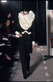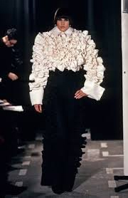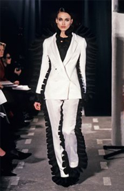 The Dutch duo, Viktor Horsting and Rolf Snoeren were both students on the Arnhem Academy of Art. From the beginning they have been focussed on the constructs of fashion -glamour, commercialism status- rather than fashion itself. They are rapidly remarked with their playful creations that feature extravagant silhouettes and destructured cuts and much adornment. Their vision, a hybrid of fashion and art, is depicted within spectacular shows that resemble conceptual happenings. In their Spring Summer 1999 haute couture collection models walked out under black lights that picked up only the white elements of each ensemble which coloured blue.