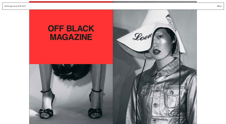 OFF BLACK MAGAZINE is a London based printed and digital publication. Each issue has its own strong design identity – allowing Off Black, along with its content, to continuously evolve and the reader to be constantly inspired. Both the printed publication and the online platforms gets redesigned with each issue – ensuring that everything about that issue is thought through.