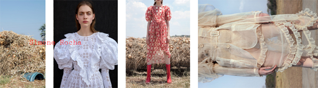 Simone Rocha was born in 1986 and is the daughter of dublin based fashion designer John Rocha. She worked at her father’s studio between the ages of 13 and 18. In 2008 rocha graduated with a BA in Fashion from The National College of Art and Design in Dublin continuing in 2010 to graduate from the acclaimed Fashion MA at Central Saint Martin’s College, London. September 2010 she debuted at London Fashion Week.